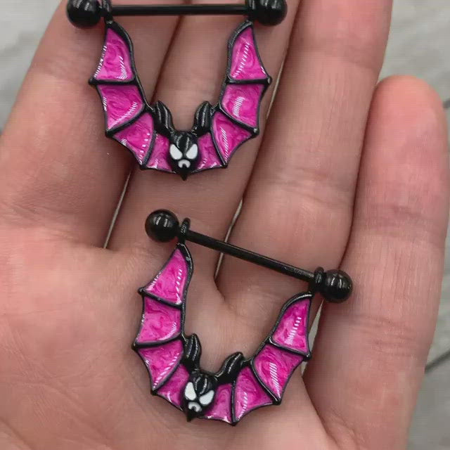 14G 3/4 Black Pinkish Bats Halloween Nipple Shield Set
