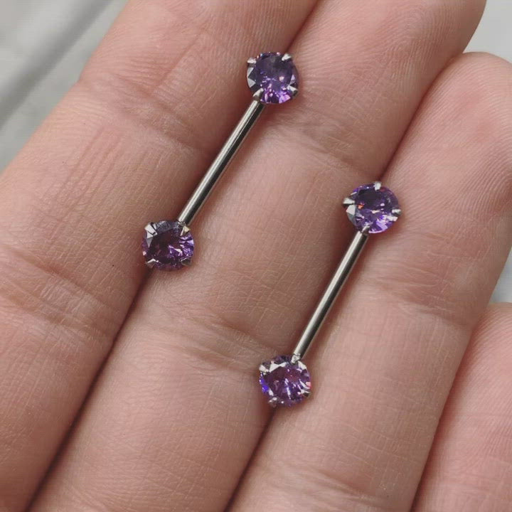 14G 9/16 Purple CZ Gem February Birthstone Nipple Ring Set