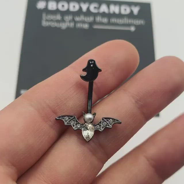 Clear Gem Black Ghost Vampire Bat Halloween Double Mount Belly Ring