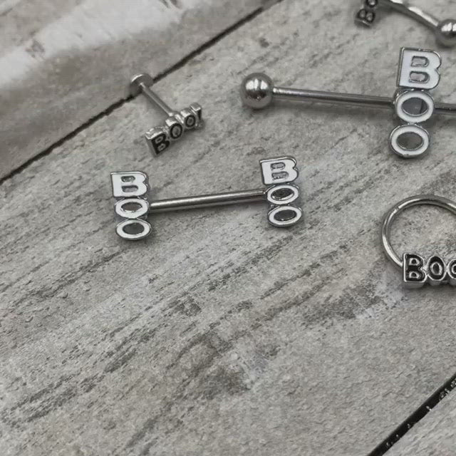 14G 9/16 Pumpkin Witch Ghost Halloween Barbell Nipple Ring Set