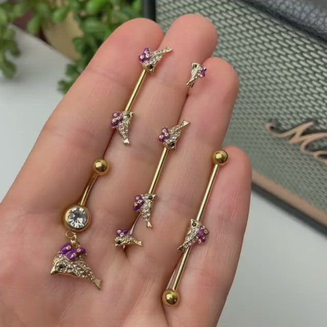 Sterling Silver 925 Crystalline KISSING DOLPHINS Belly Ring