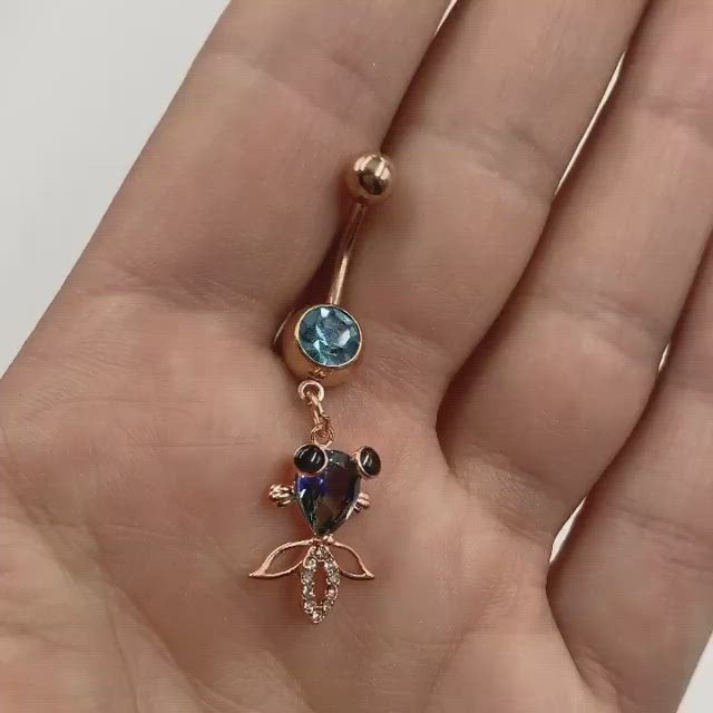 Clear Aurora Gem Rose Gold Tone Elegant Dance Crown Belly Ring