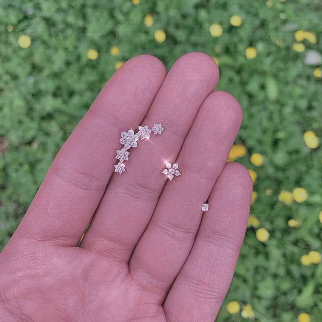 Titanium Flat Back Earring Set - CZ Crescent Moon Star Dangle 16G