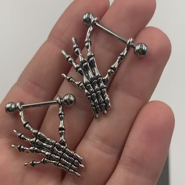 14G 9/16 Holiday Red Bells Christmas Chain Dangle Nipple Ring Set