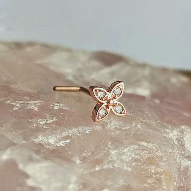 20G 7mm Clear Gem Rose Gold Tone Butterfly L Shaped Nose Ring