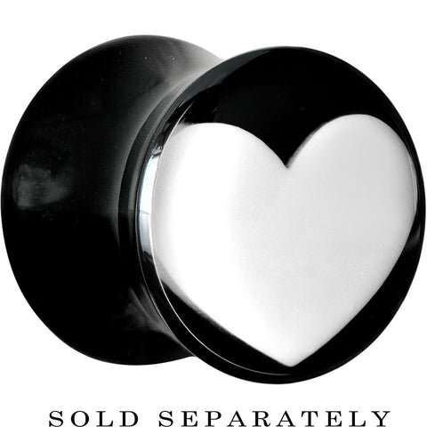 Hypoallergenic jewelry for sensitive skin.This 00 gauge saddle plug radiates love from your lobes with a single white heart detail against its black background. The acrylic ear plug is sold individually, so please make sure to purchase two (2) of this item if you would like a pair.
