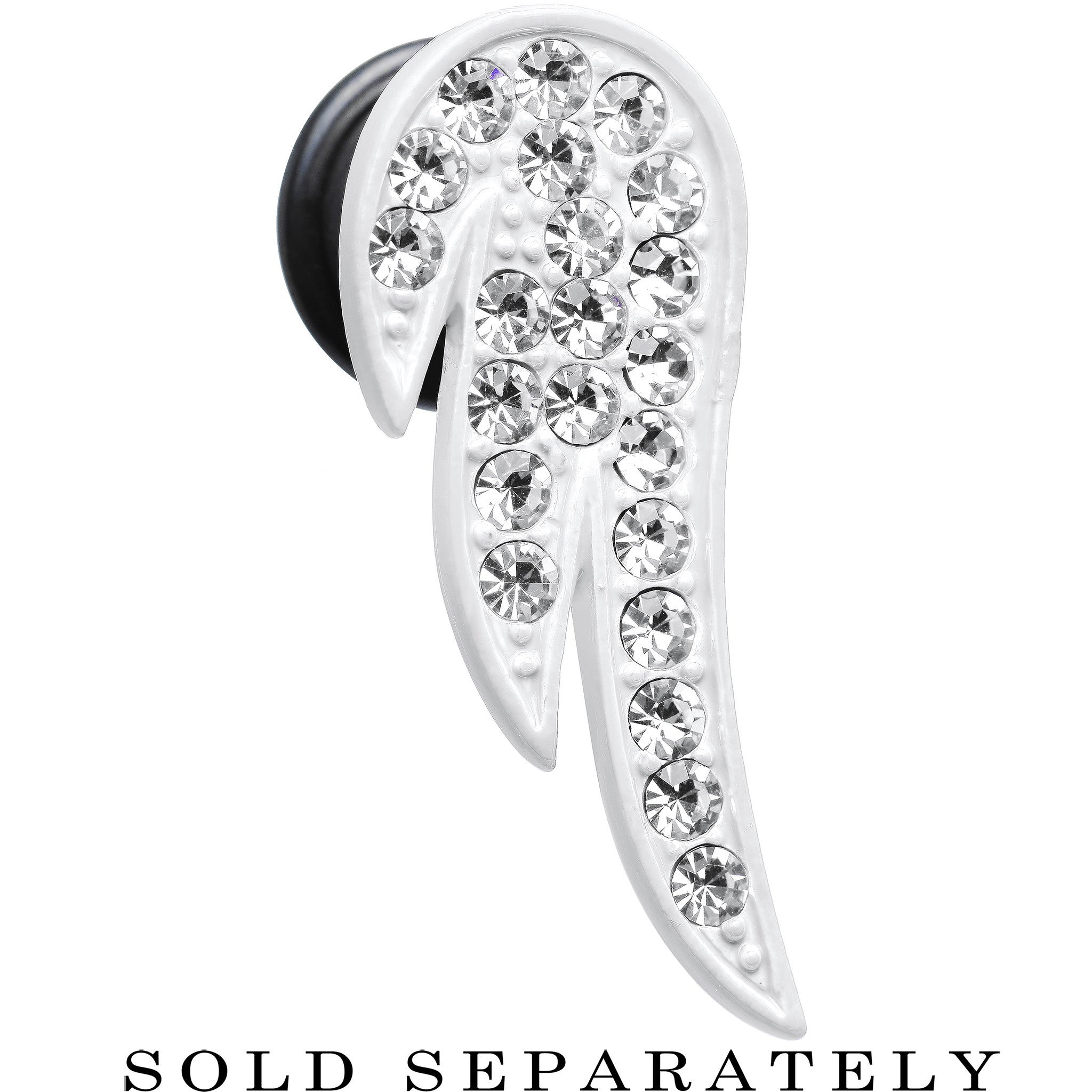 Item sold individually, purchase two for a pair. Never leave your guardian angel far behind with this 12mm white enamel angel wing stainless steel plug. The heavenly single flare ear stretcher features a solitary brilliant white wing studded with twinkling clear gems. Pierced ear expander ear gauge tunnel plug includes one rubber O-ring.