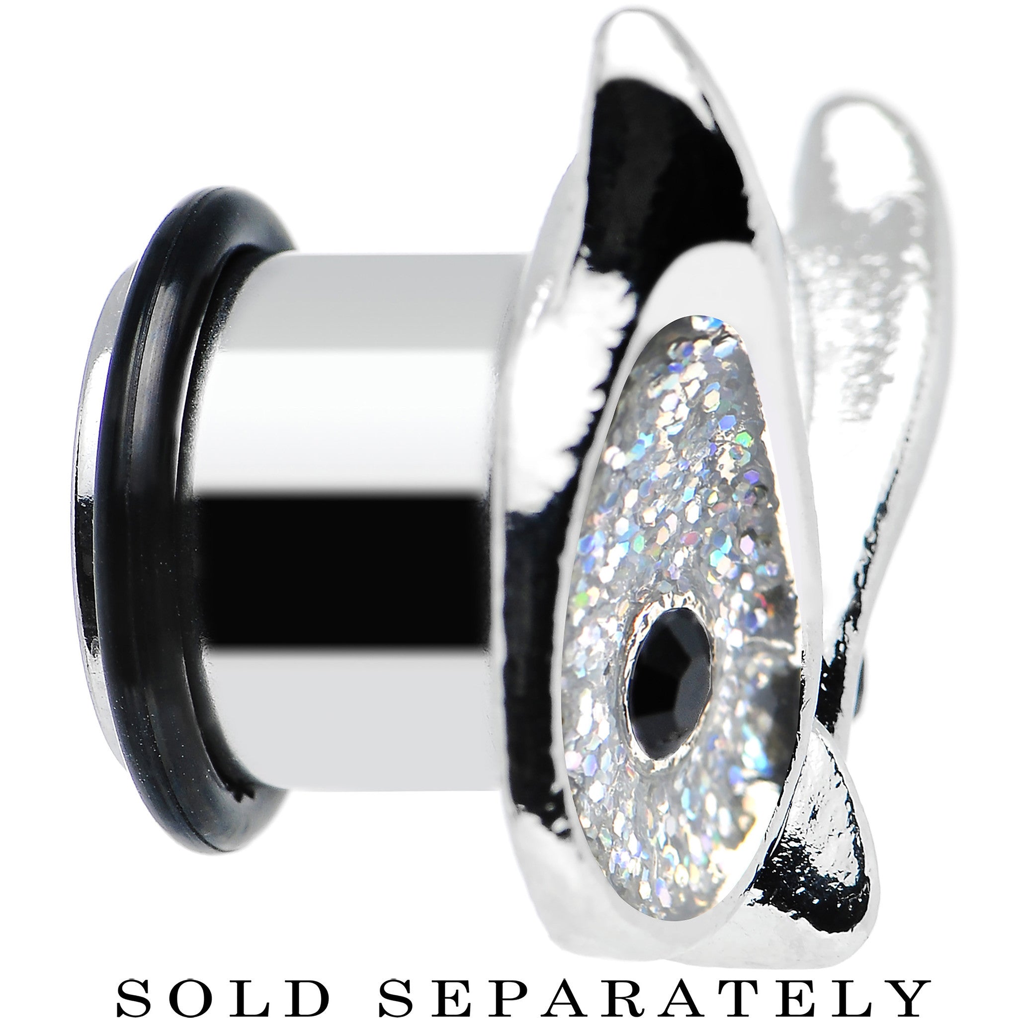 Item sold individually, purchase two for a pair. The usually wise owl on this 12mm stainless steel plug is ready to put away the books for the night and have a party! The single flare ear stretcher features a owl face complete with clear glitter and black gem eyes. Animal themed pierced ear expander ear gauge tunnel plug includes one rubber O-ring.