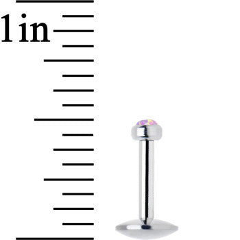 Become mesmerizing with the help of this 16 gauge tragus cartilage earring featuring a 2.5mm bezel set synthetic pink opal cabochon accent. The 1/4" long straight barbell is made of 316L surgical grade stainless steel and is internally threaded, so ball ends that are externally threaded will be compatible with this barbell earring.