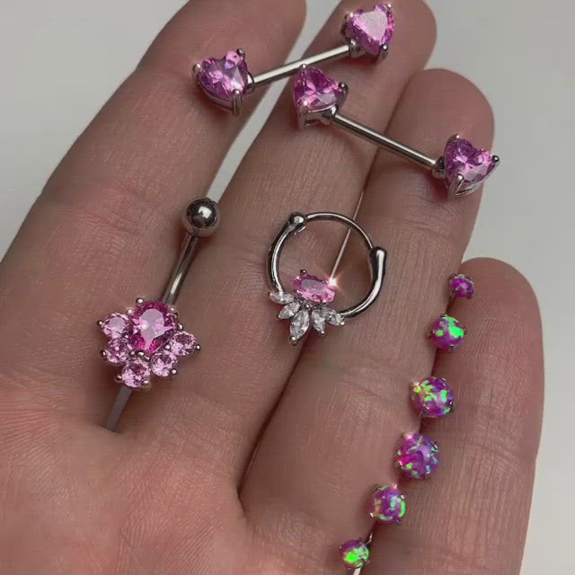 14G 1/2 Pink CZ Gem Heart Threadless Barbell Nipple Ring Set