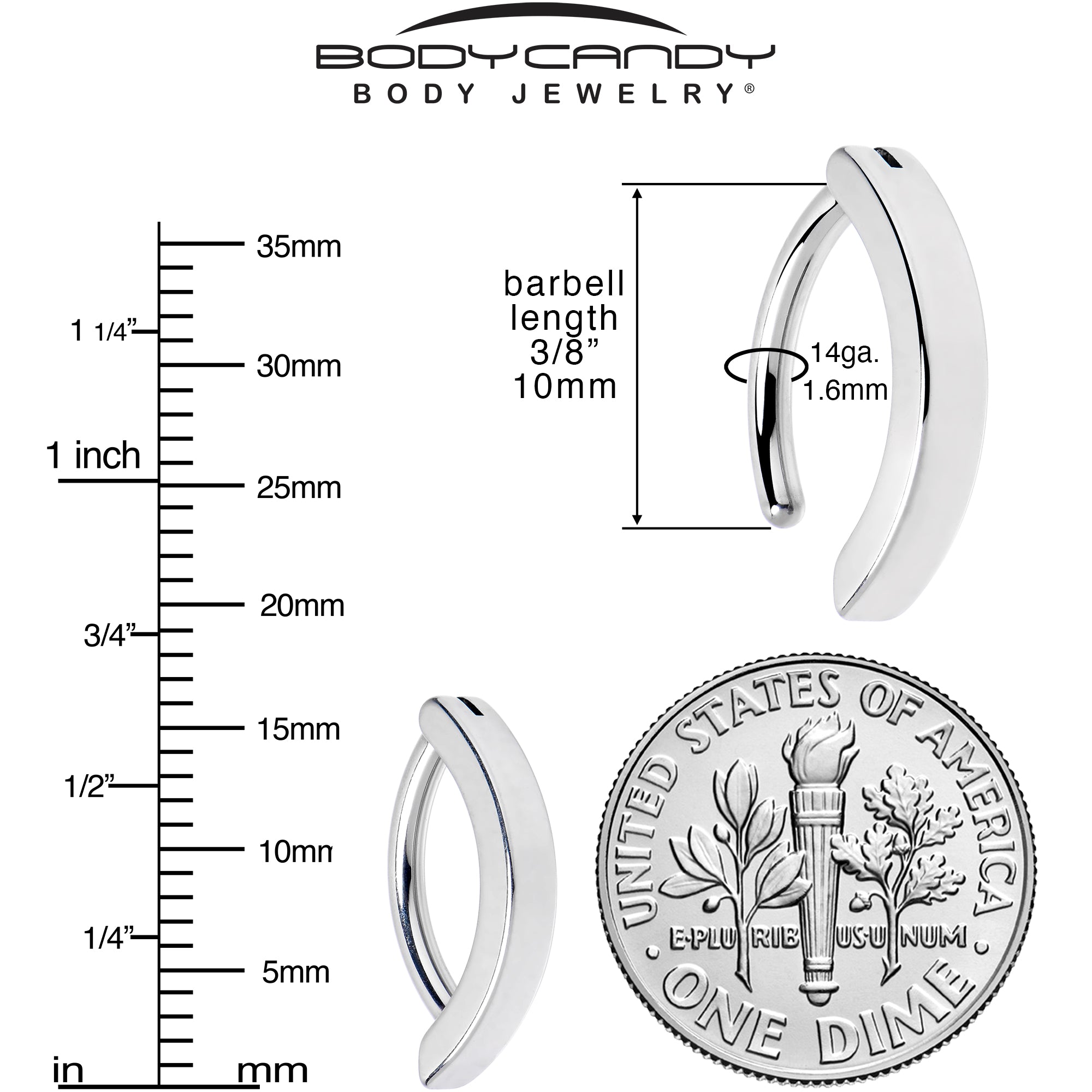 14 Gauge (1.6mm) 3/8" (10mm), All 316L Surgical Grade Stainless Steel, High Quality Precision Hinged Belly Ring