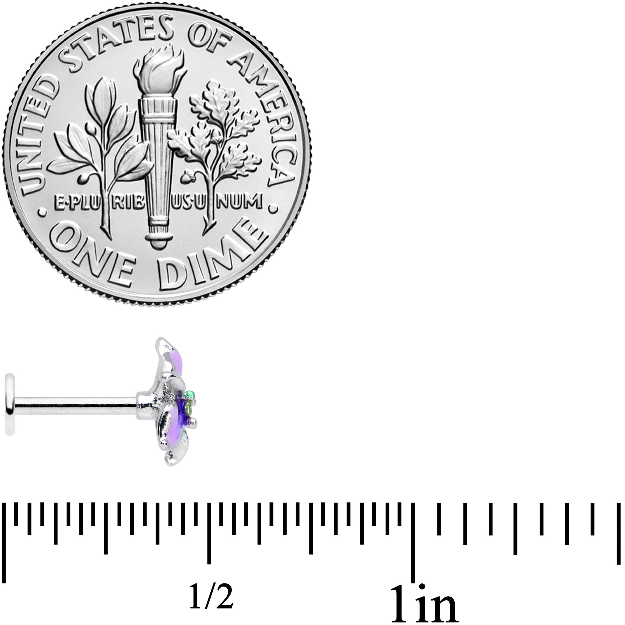 16 Gauge 5/16 Clear Gem Exotic Purple Flower Labret Monroe Tragus