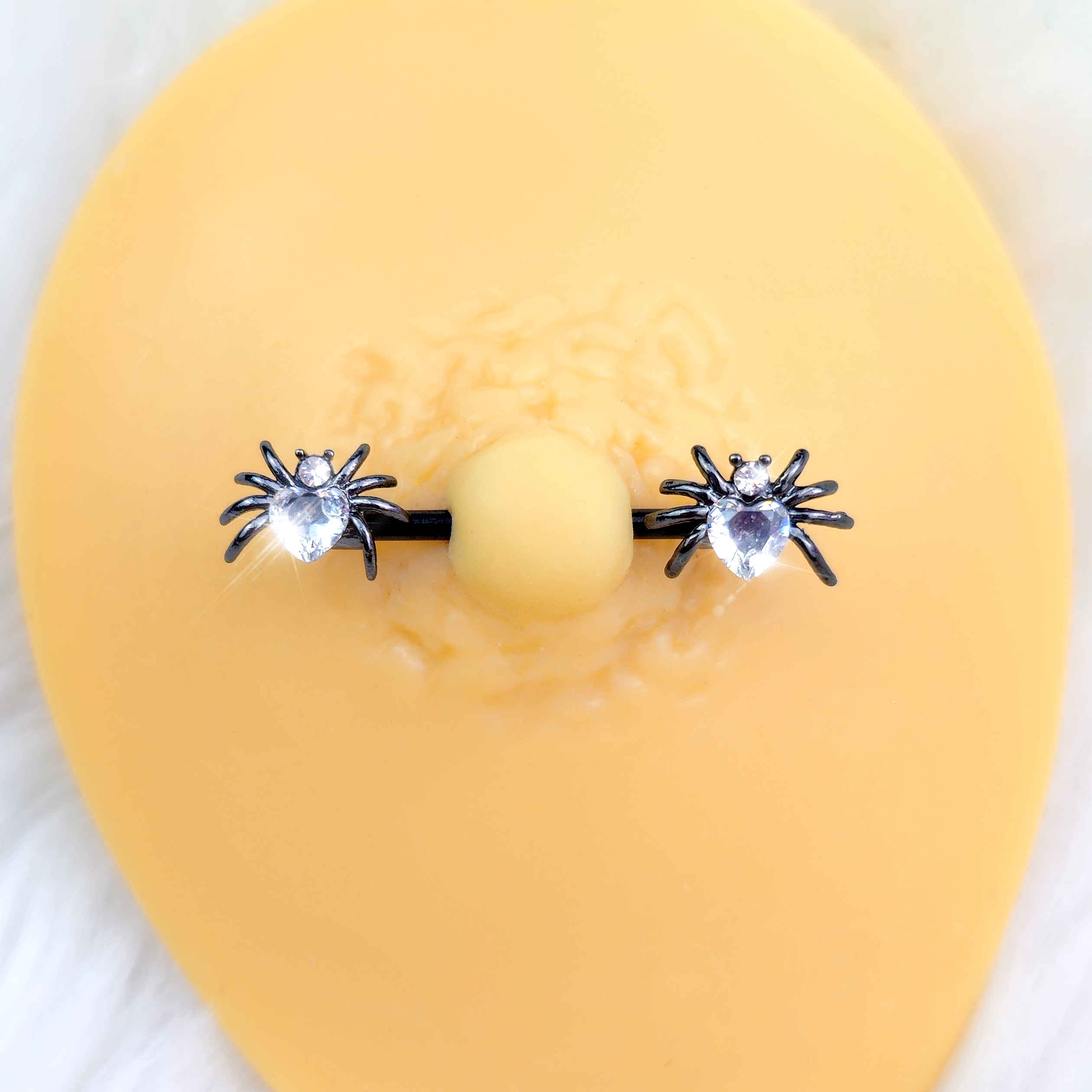 14G 5/8 Clear Gem Black Sexy Heart Spider Barbell Nipple Ring Set
