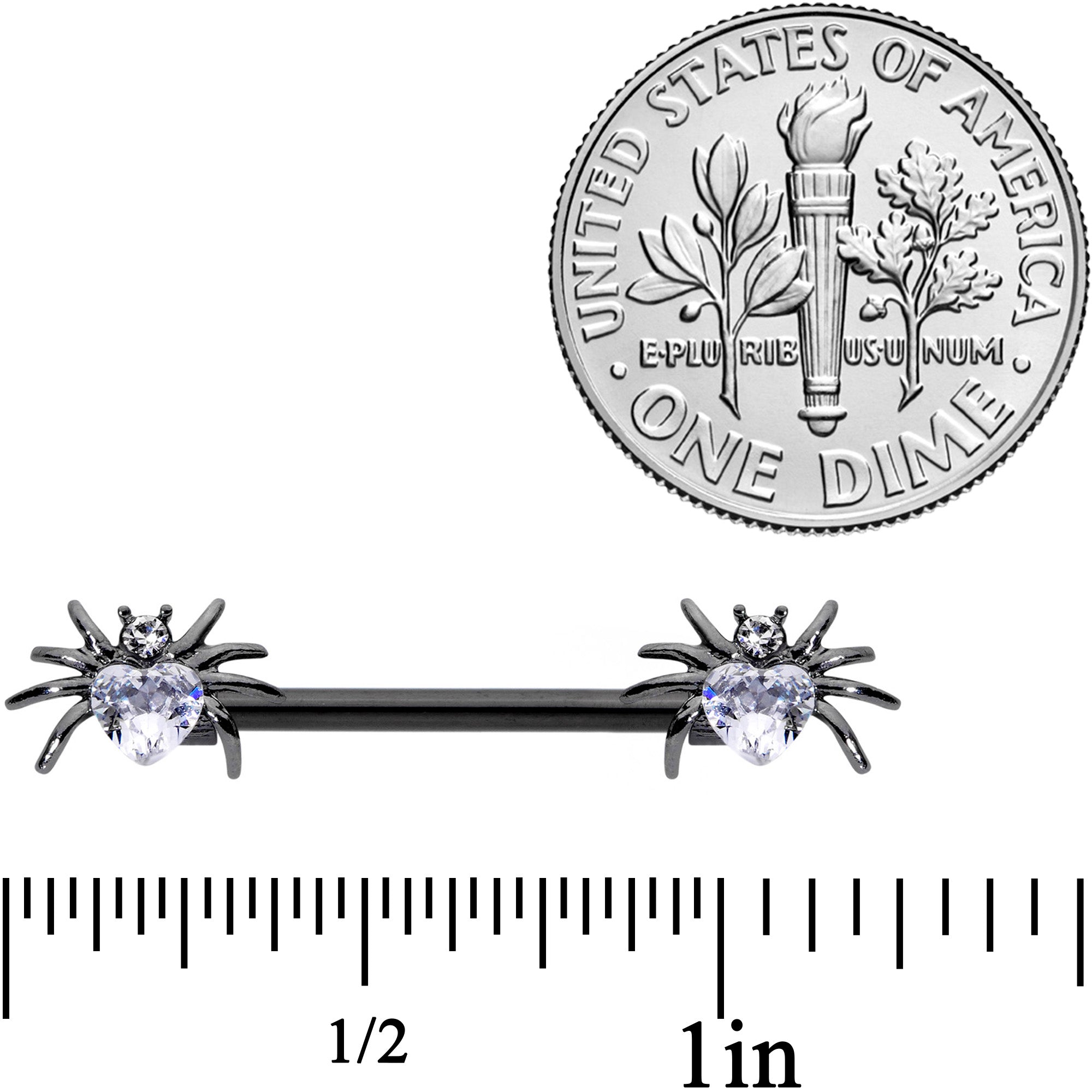 14 Gauge 5/8 Clear Gem Black Sexy Heart Spider Barbell Nipple Ring Set