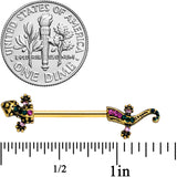 Lizard lovers rejoice....and then check out this 14 gauge nipple jewelry! It's made with 16mm gold tone PVD over 316L surgical grade stainless steel straight barbells. The ends features a salamander charm. One end is the lizard's head, set with pink and aqua gems for a brilliant dash of color, as well as textured detailing. The other end is the lizard's tail, set with more pink and aqua gems for a cohesive look. It even features the lizard's tail and toes. Let the world know that you're king or queen of the lizards with these splendid salamander nipple piercing rings! Sold as a set of two.