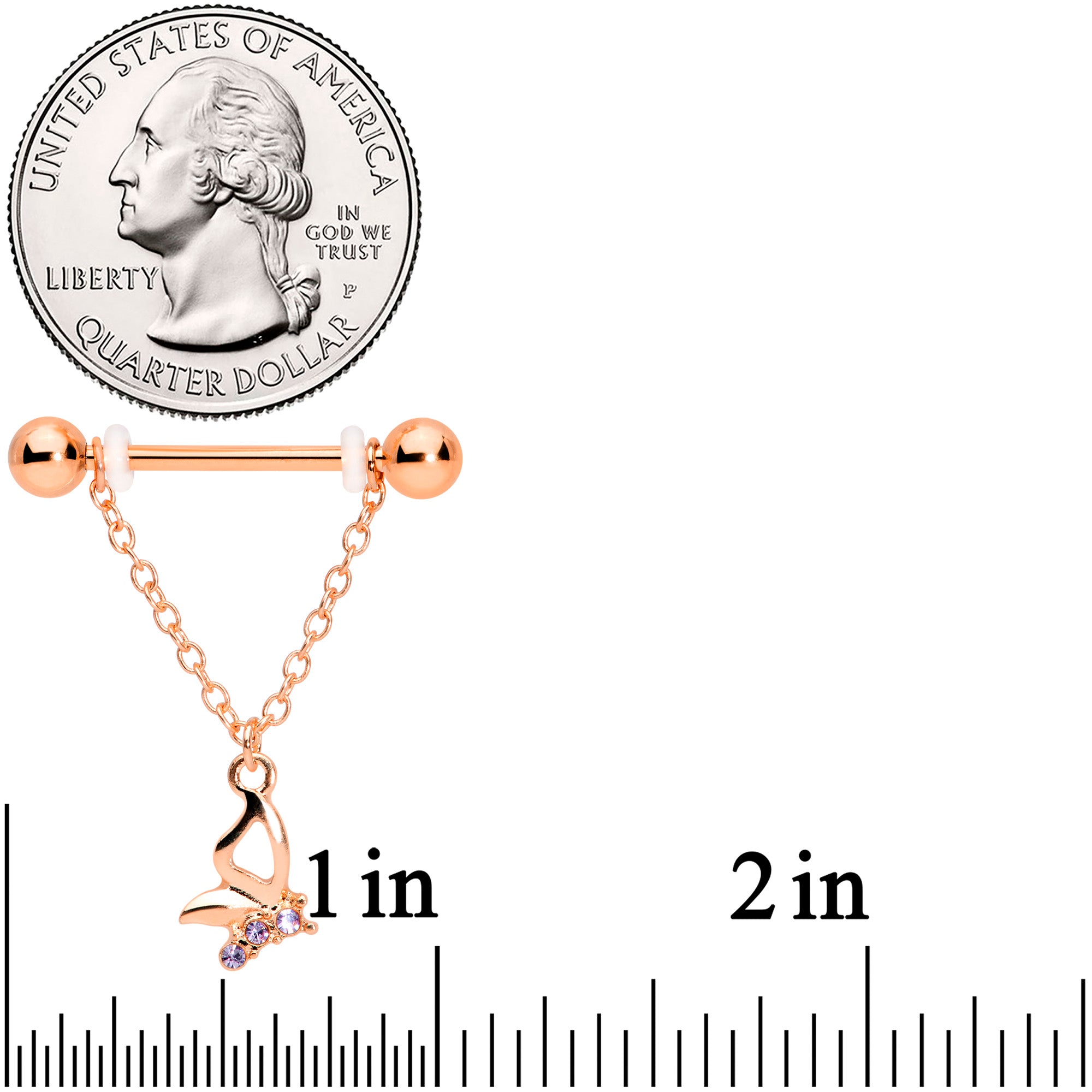 14G 5/8 Purple Gem Rose Gold Hue Butterfly Dangle Nipple Ring Set