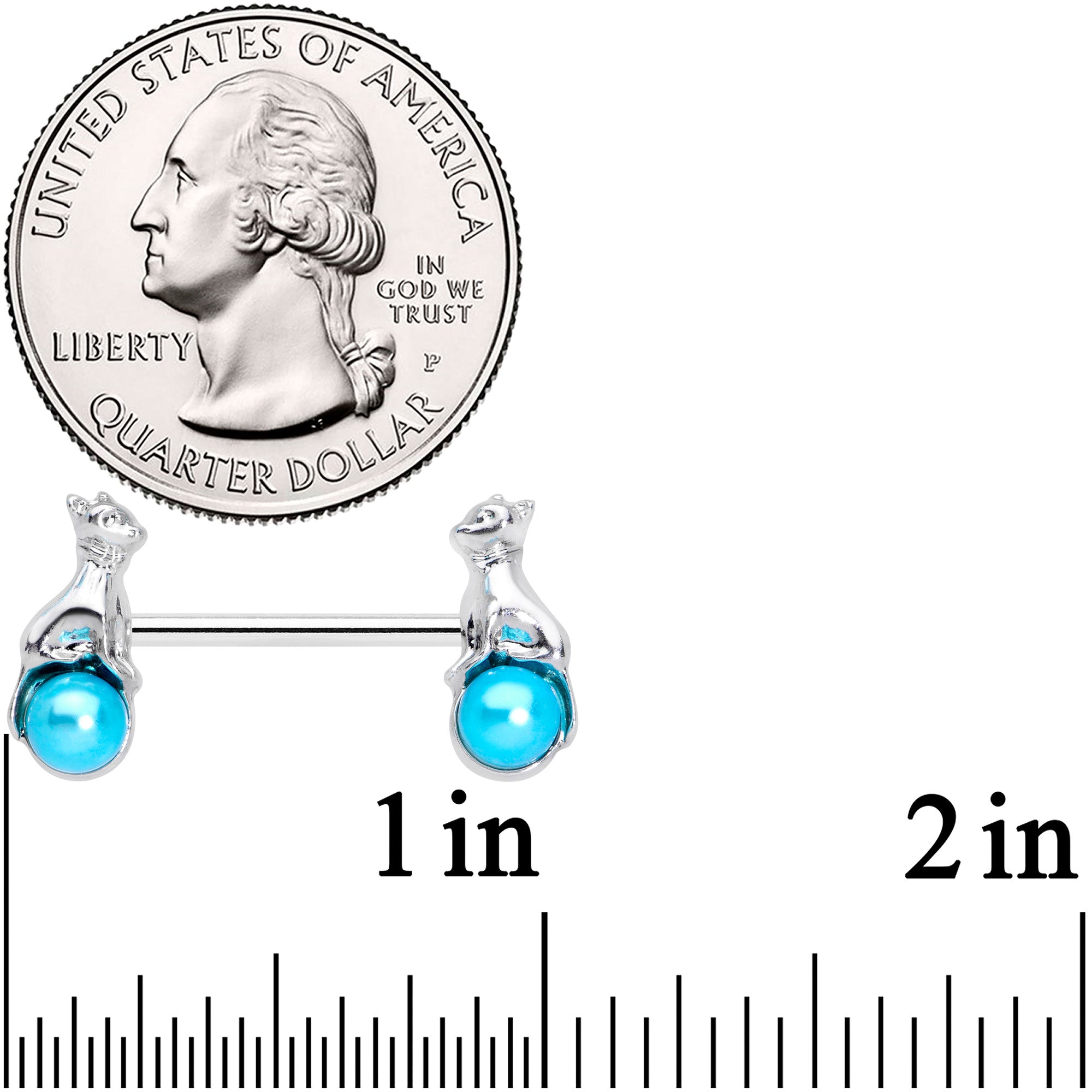 14 Gauge 9/16 Aqua Orb Baby Bear Barbell Nipple Ring Set