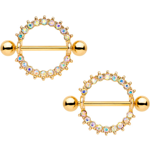 ,14 Gauge 9/16" Aurora Gem Gold PVD Halo Wreath Nipple Shied Set