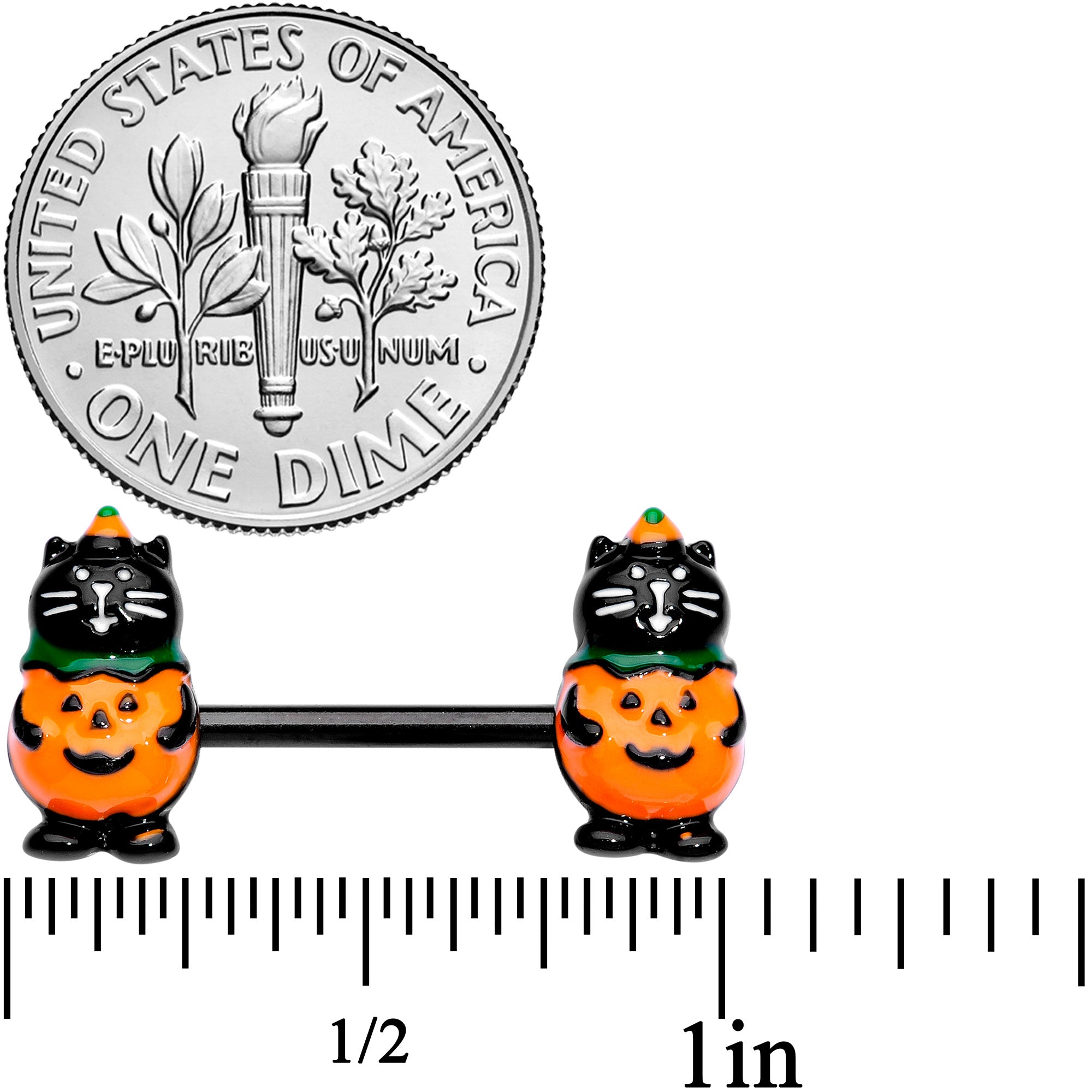 14G 9/16 Black Cat Pumpkin Halloween Barbell Nipple Ring Set