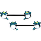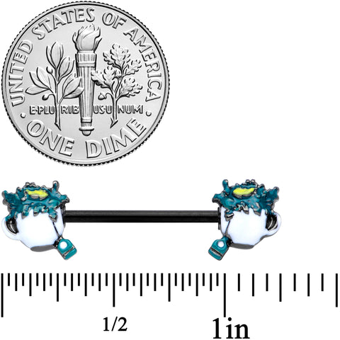14 Gauge 9/16 Black Creepy Halloween Tea Barbell Nipple Ring Set