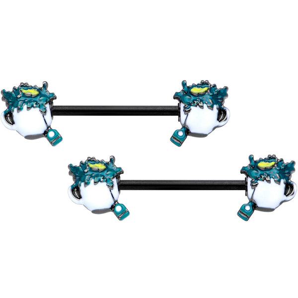 14G 9/16 Black Creepy Halloween Tea Barbell Nipple Ring Set