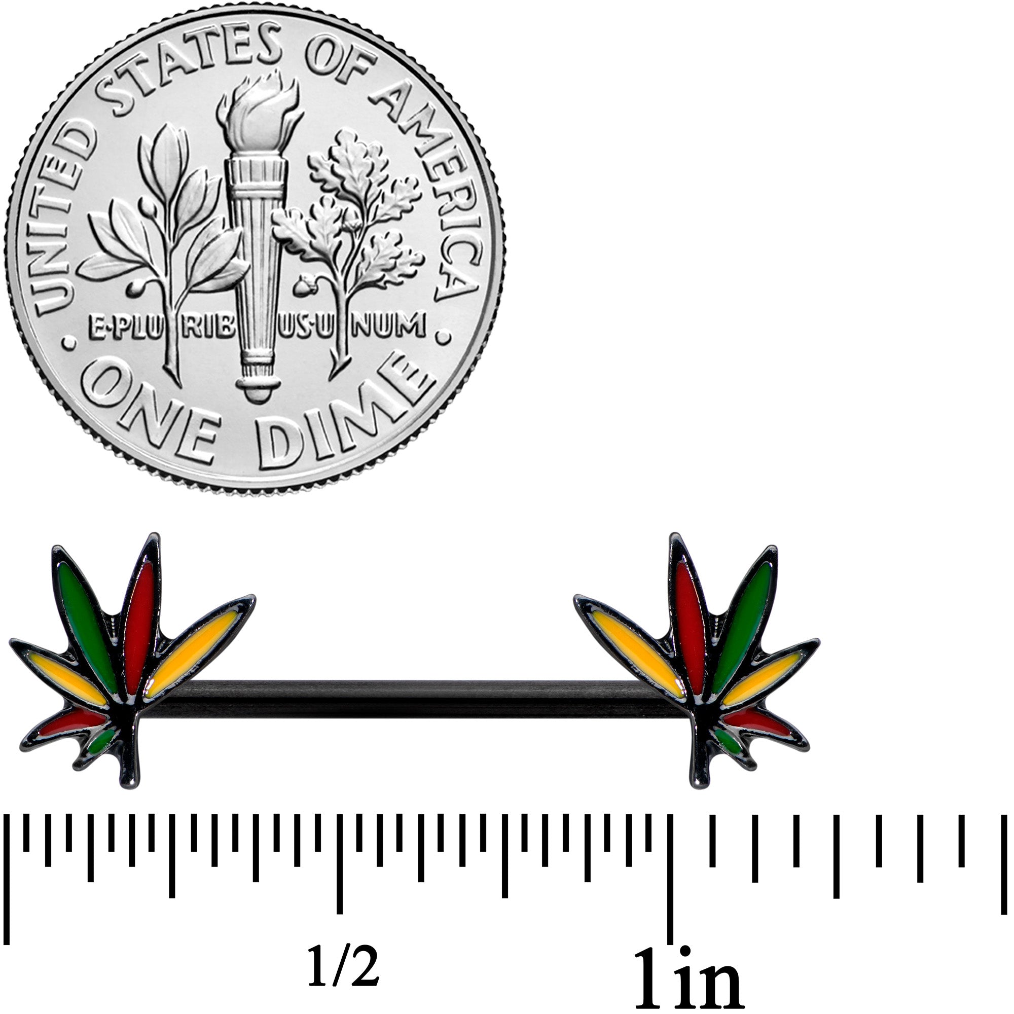 14G 9/16 Black Multicolor Weed Pot Leaf Barbell Nipple Ring Set