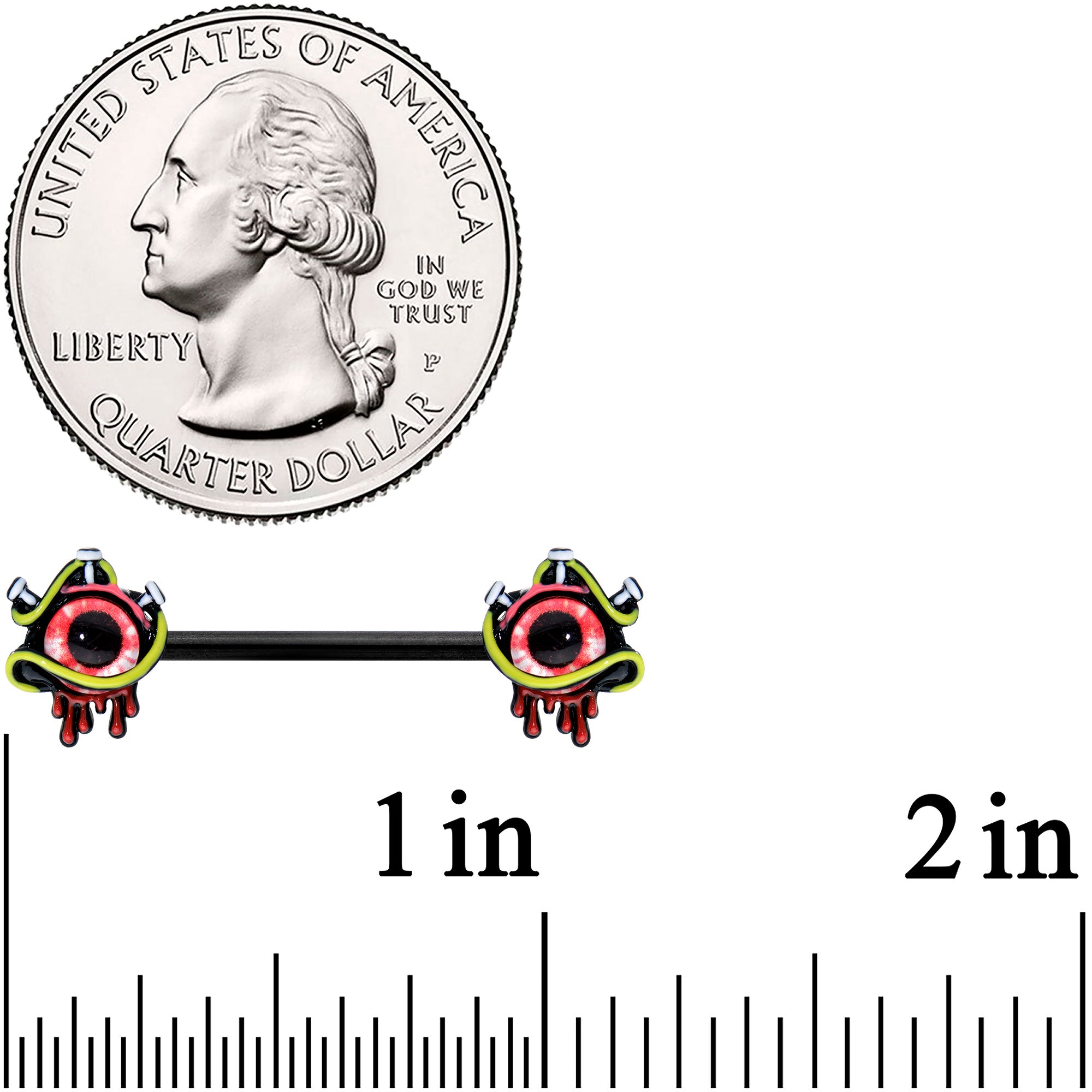 14G 9/16 Black Spiky Eyeball Halloween Barbell Nipple Ring Set