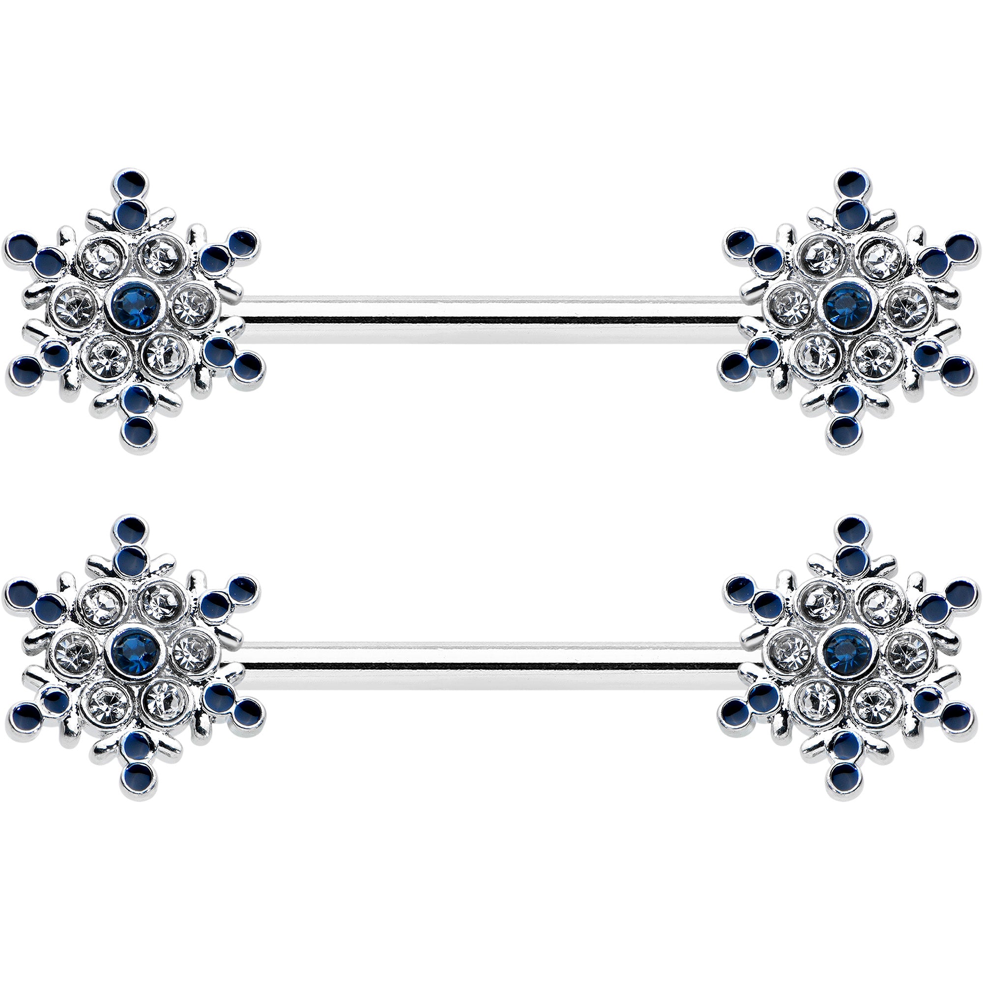 14 Gauge 9/16 Blue Gem Festive Snowflake Christmas Nipple Ring Set