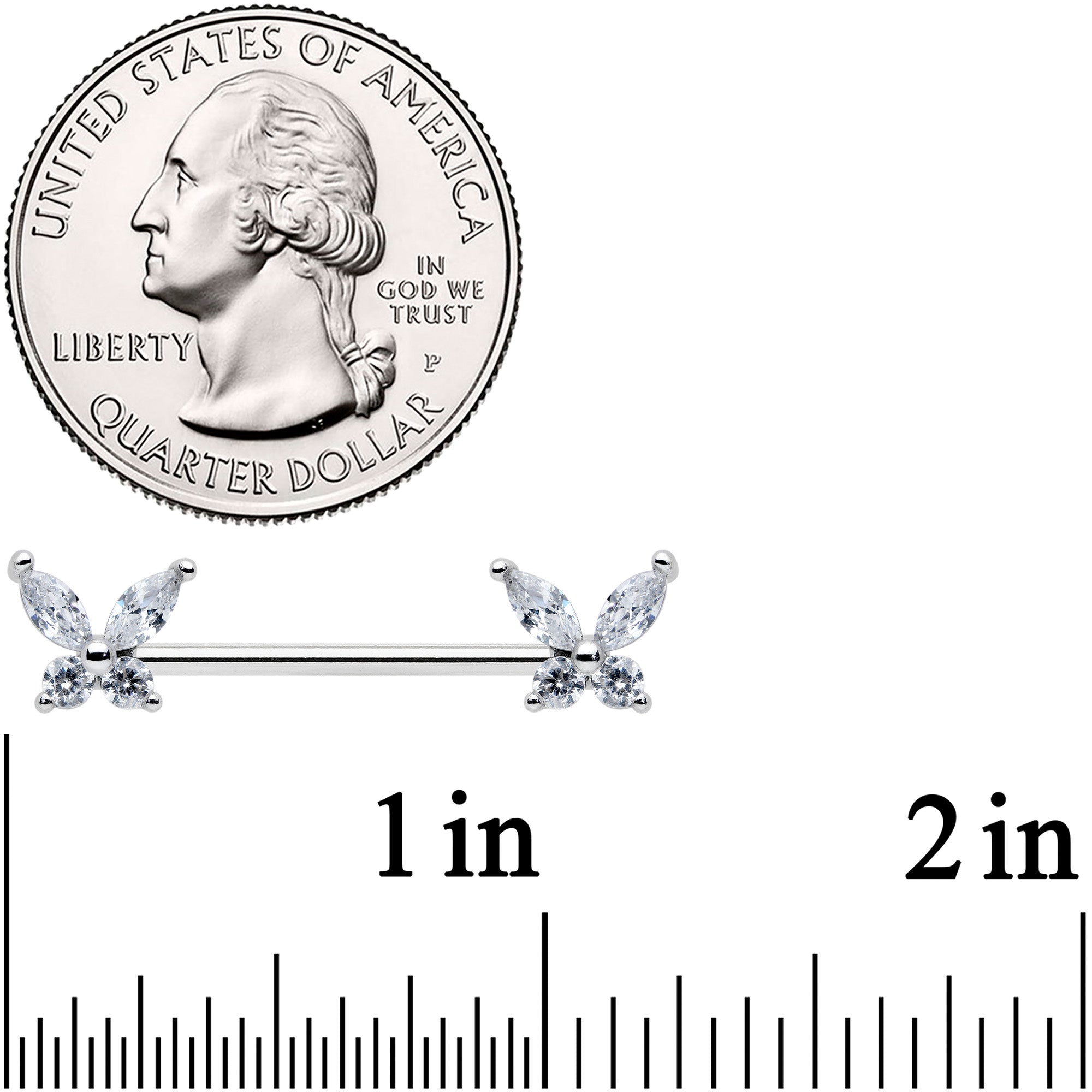 14 Gauge 9/16 Clear CZ Gem Butterflies Barbell Nipple Ring Set