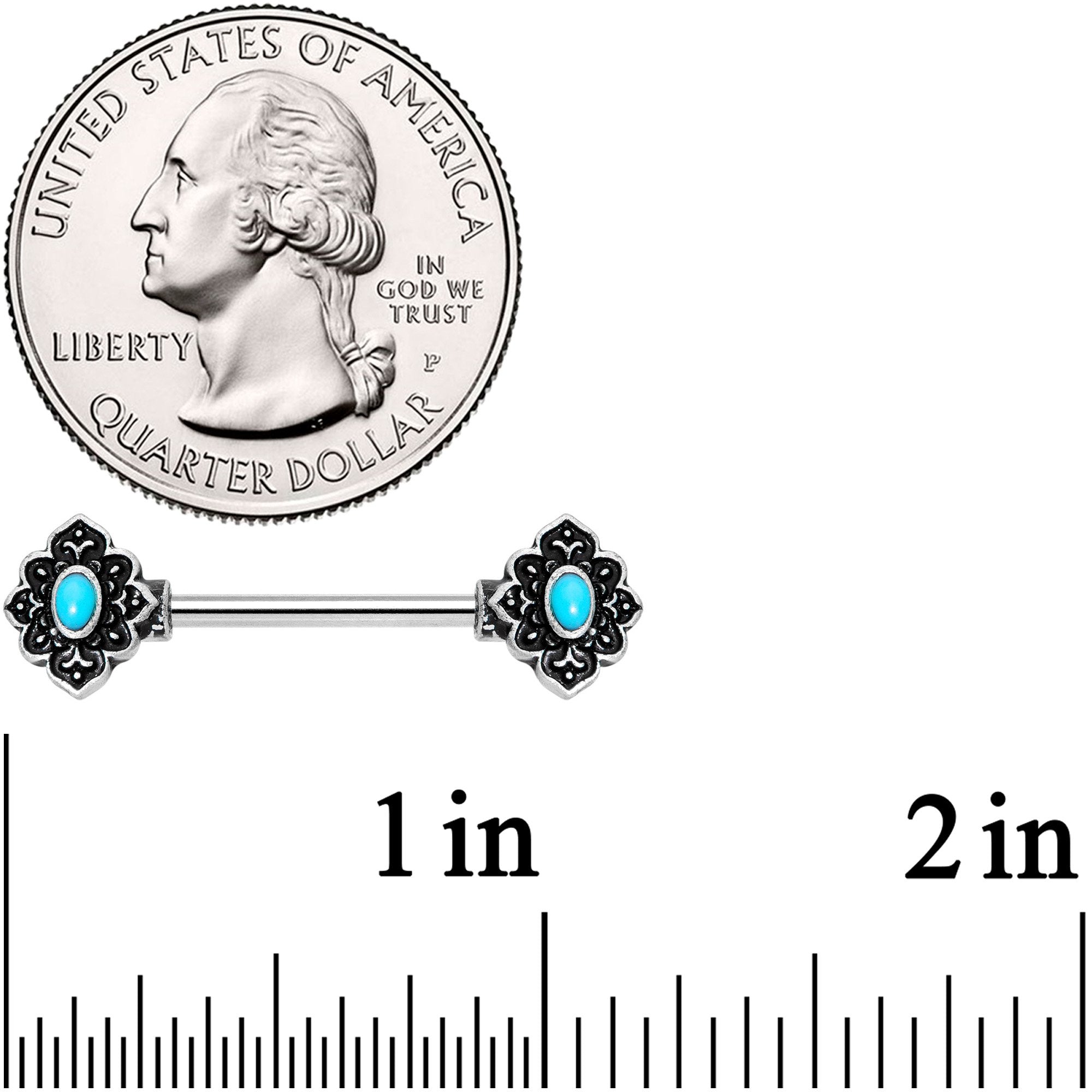 14G 9/16 Faux Turquoise Baroque Oval Barbell Nipple Ring Set