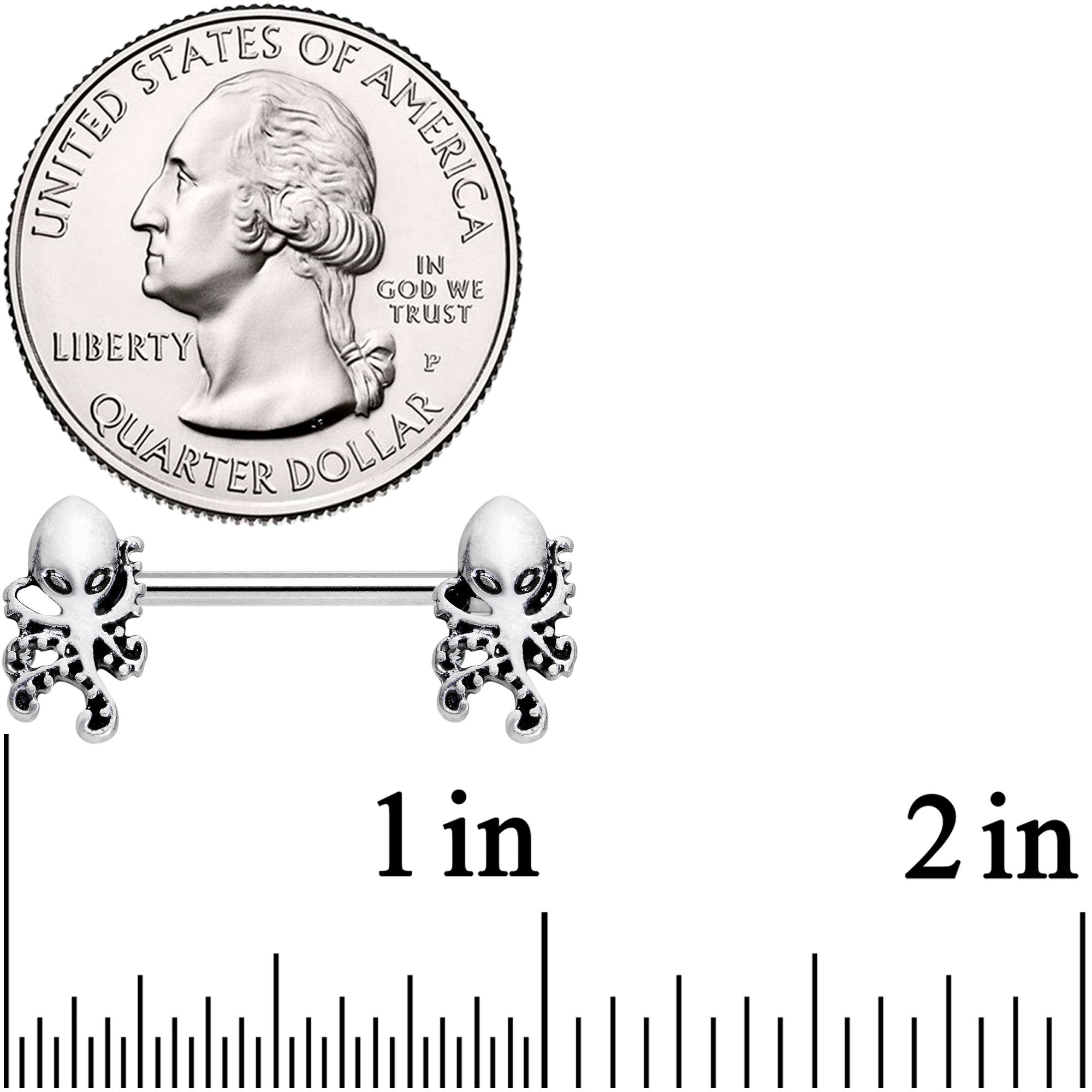 14G 9/16 Nautical Treasures Octopus Barbell Nipple Ring Set