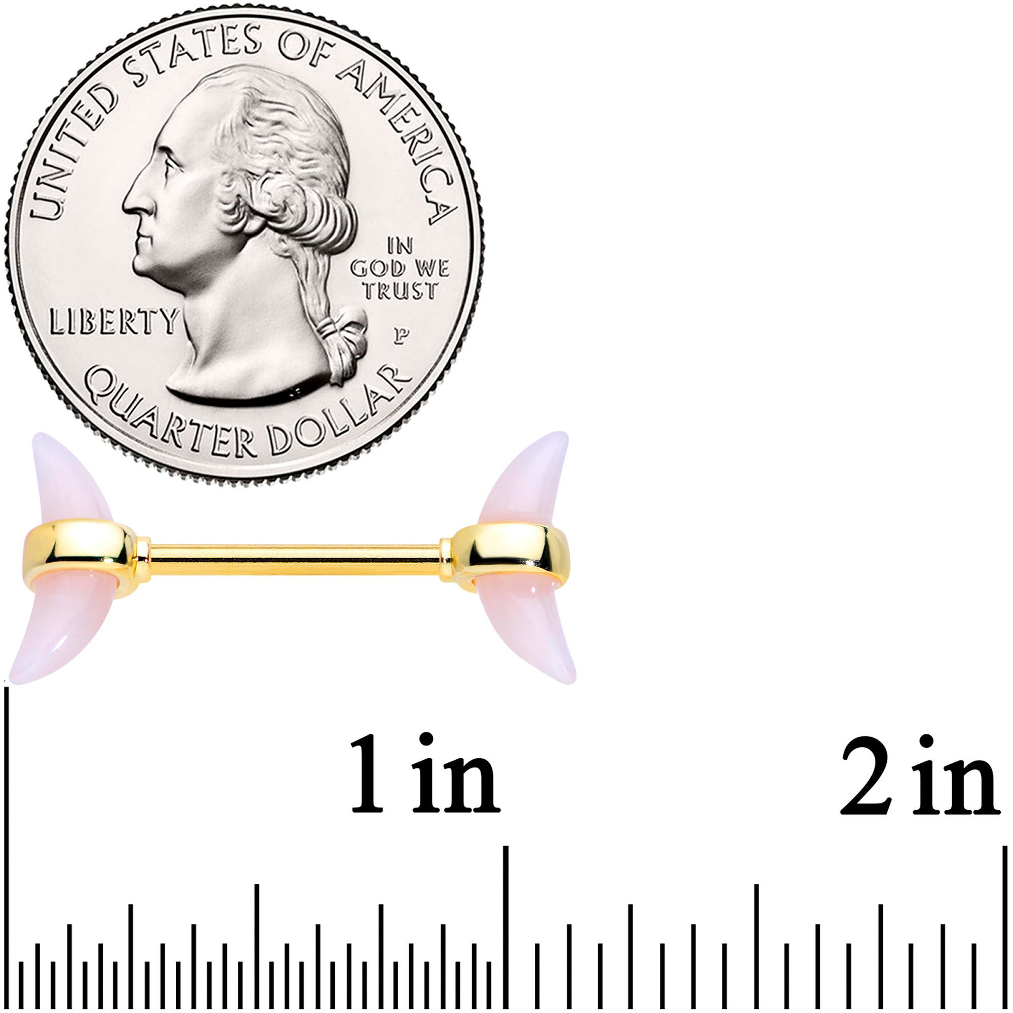 14 Gauge 9/16 Pink Gem Gold Tone Crescent Barbell Nipple Ring Set