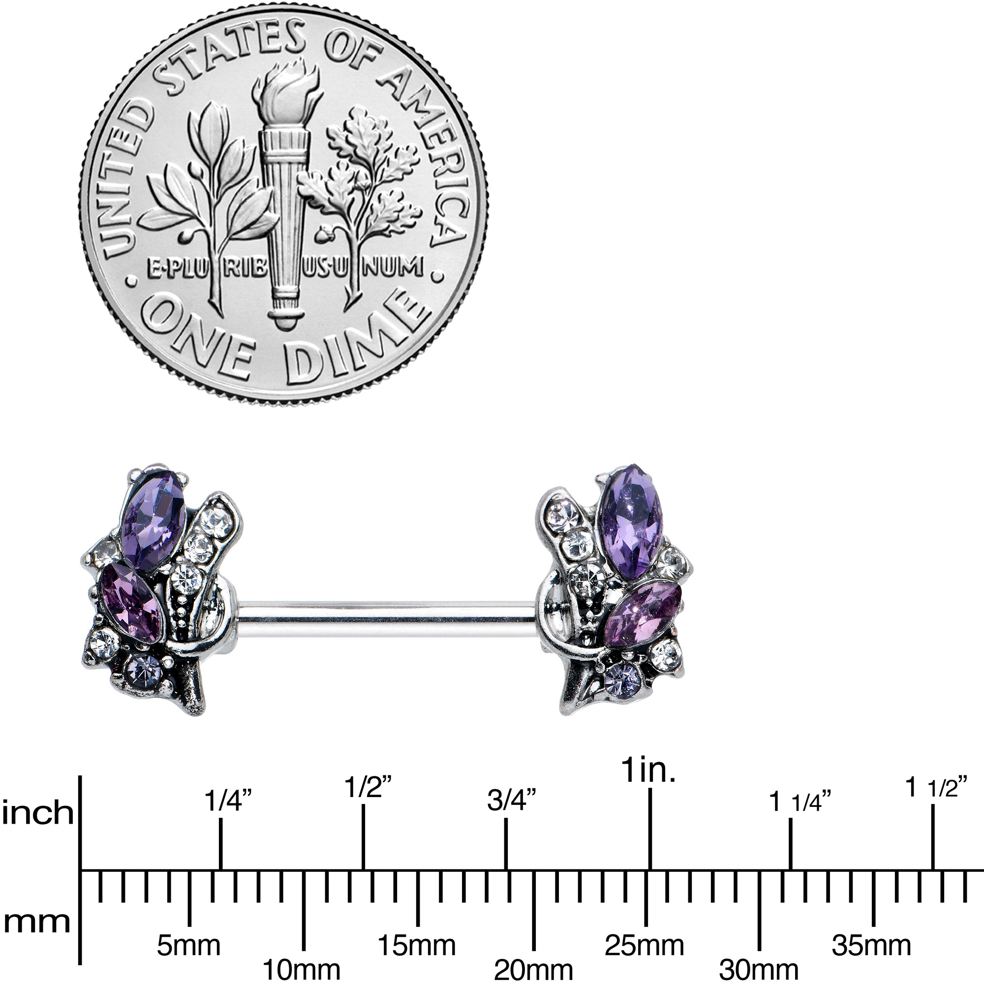 14 Gauge 9/16 Purple Gem Abstract Elegance Barbell Nipple Ring Set