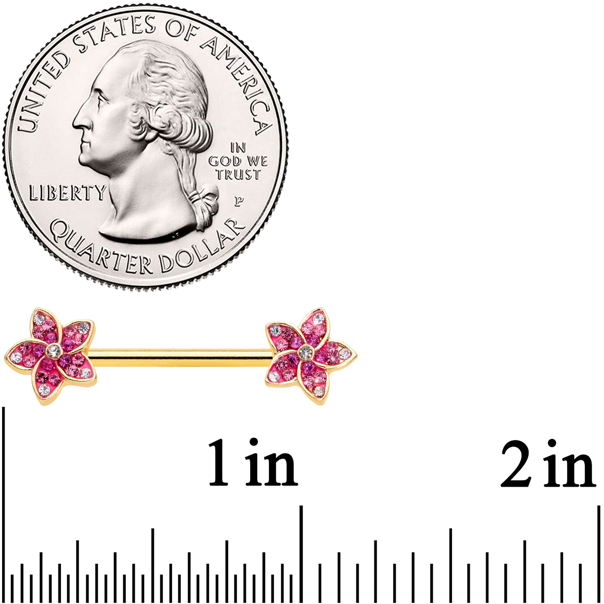 14 Gauge 9/16 Purple Gem Gold Tone Flowers Barbell Nipple Ring Set