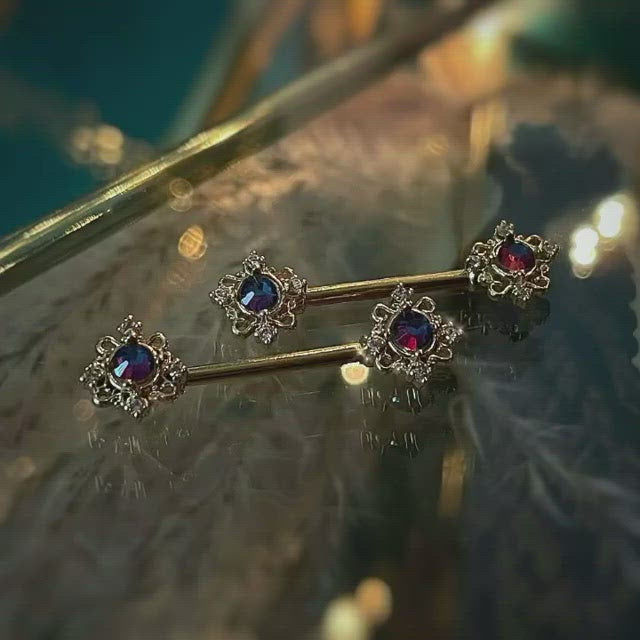 14G 9/16 Purple Tourmaline Gold Tone Filigree Nipple Ring Set