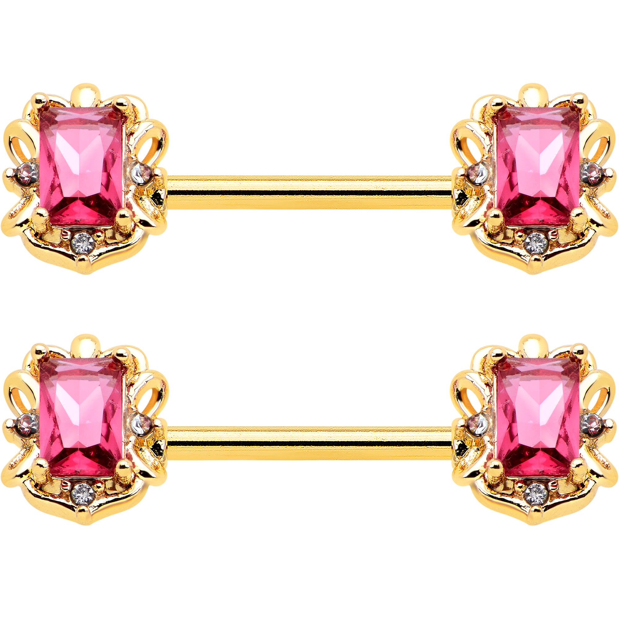 14G 9/16 Red Gem Gold Hue Regal Escutcheon Barbell Nipple Ring Set
