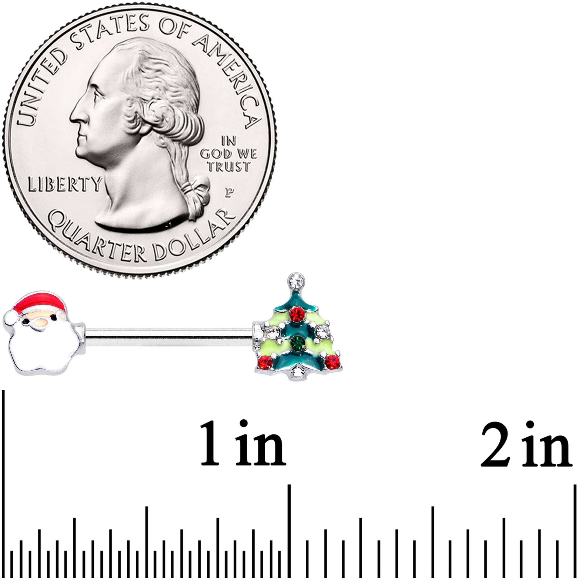 14 Gauge 9/16 Red Gem Santa Christmas Tree Barbell Nipple Ring Set