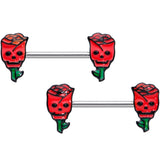 14G 9/16 Skull Red Roses Valentine Barbell Nipple Ring Set