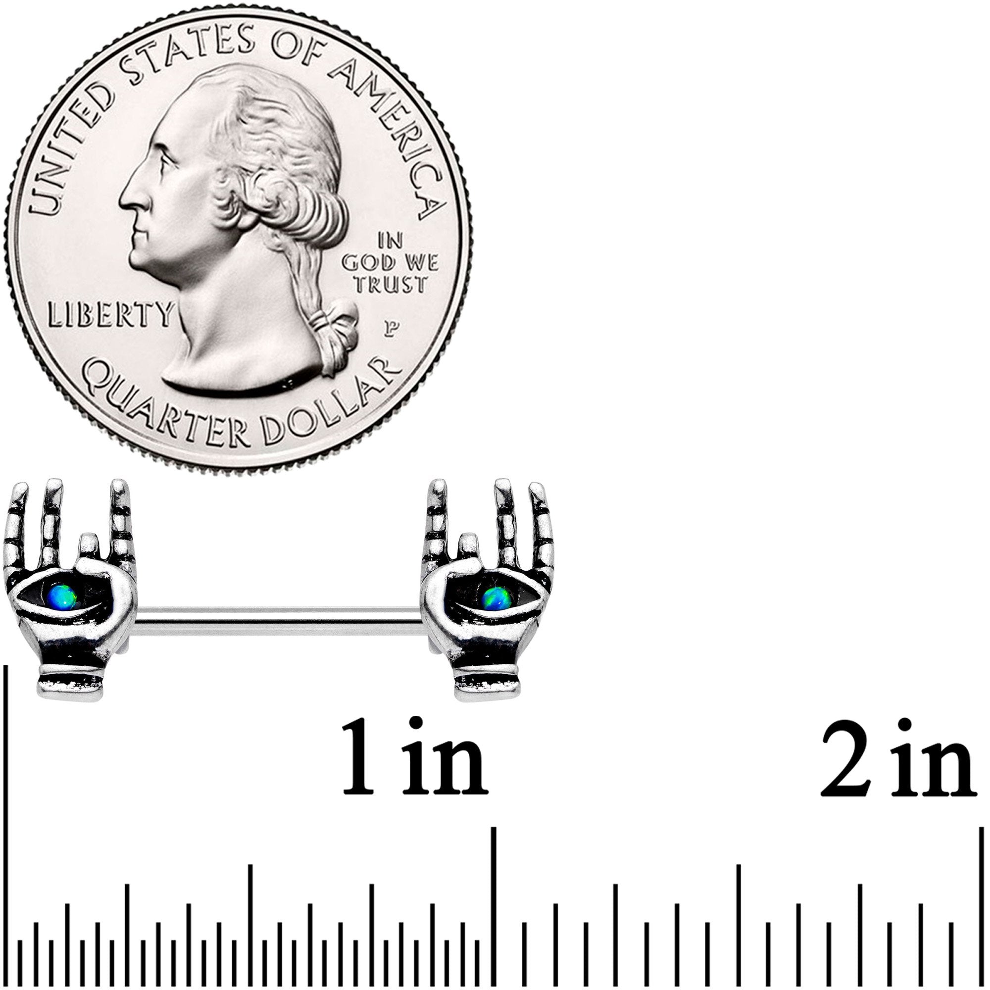 14 Gauge 9/16" Synthetic Opal Hamsa Barbell Nipple Ring Set