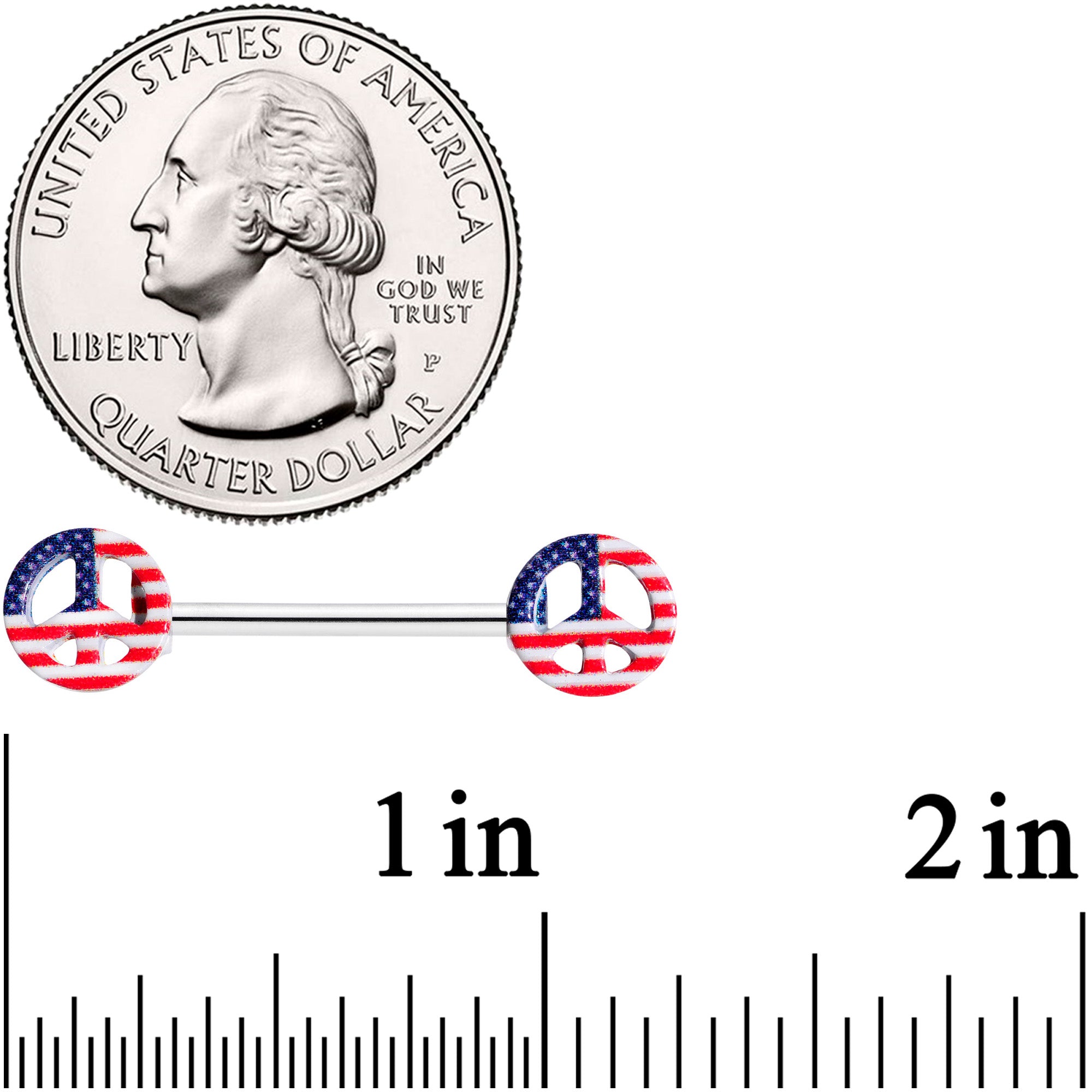 14G 9/16 USA American Flag Peace Sign Barbell Nipple Ring Set