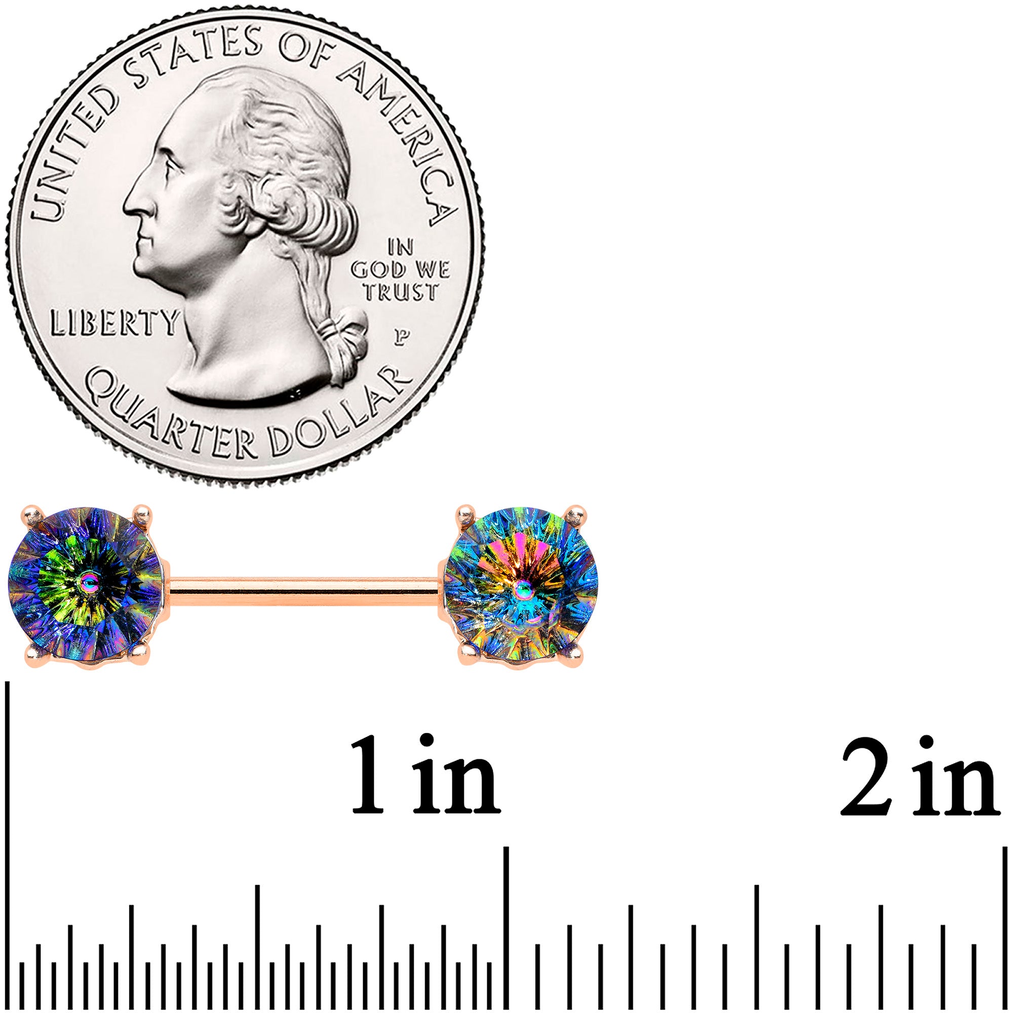 14 Gauge 9/16 Vitrail Gem Rose Gold Tone Simply Elegant Nipple Ring Set