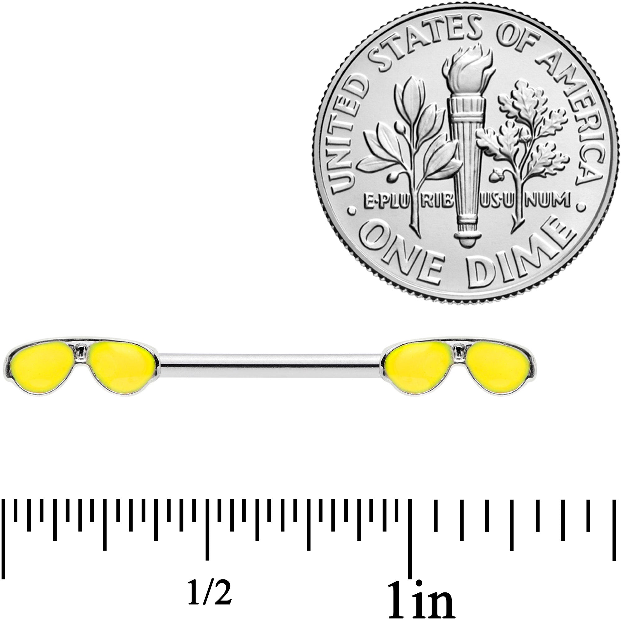 14 Gauge 9/16 Yellow Aviator Sunglasses Barbell Nipple Ring Set