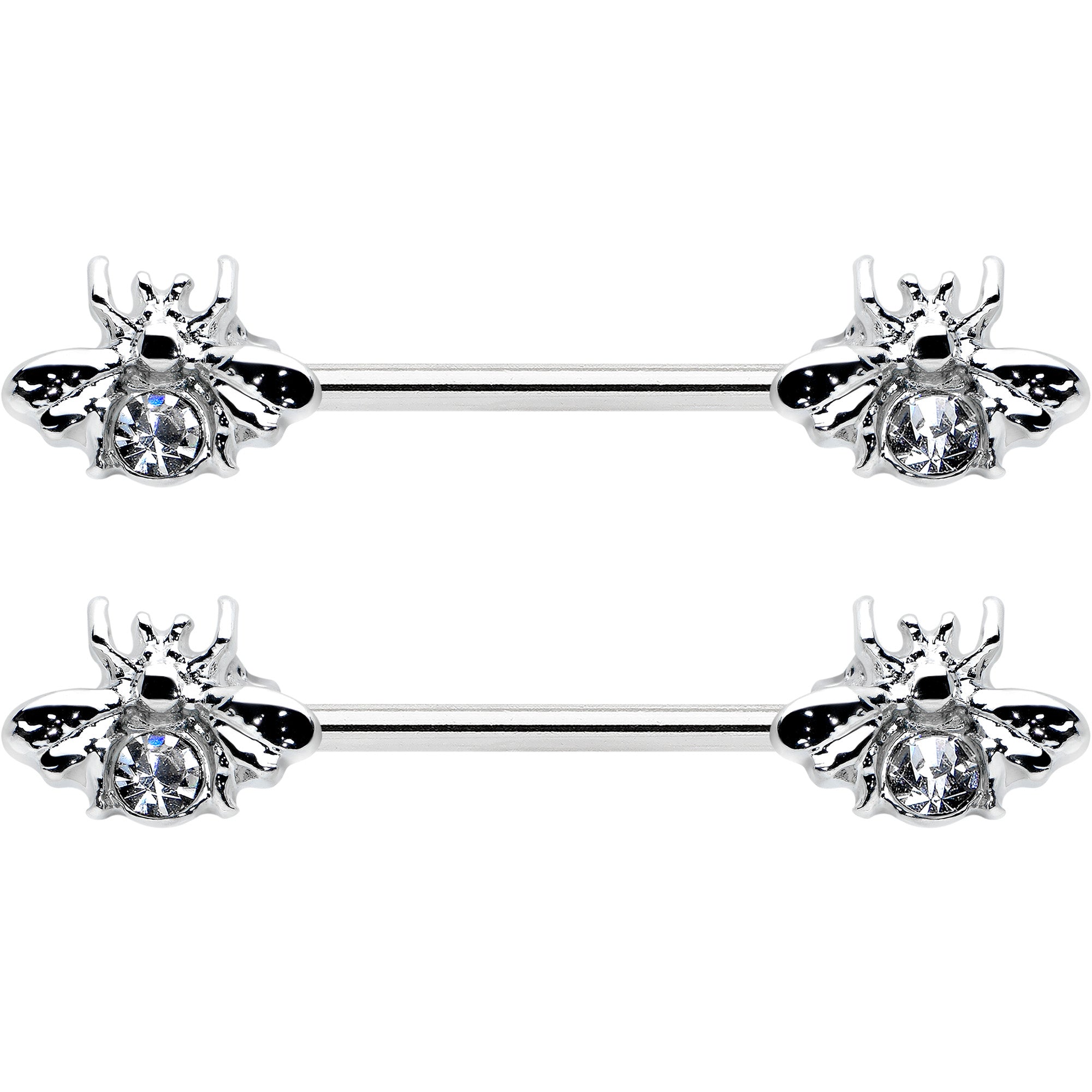 14G 9/16 Clear Gem Bee Beautiful Insect Barbell Nipple Ring Set