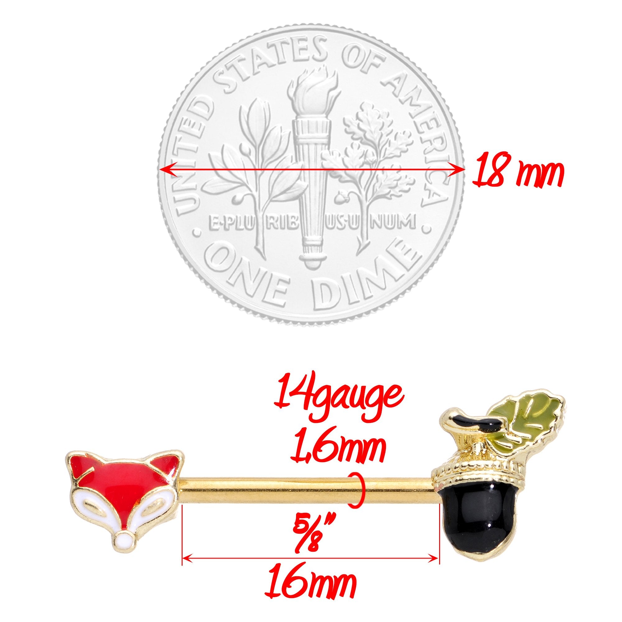 14G 9/16 Gold Tone Fox and Acorn Barbell Nipple Ring Set