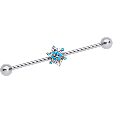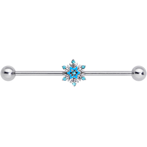 14 Gauge Aqua Gem Winter Snowflake Christmas Industrial Barbell 38mm
