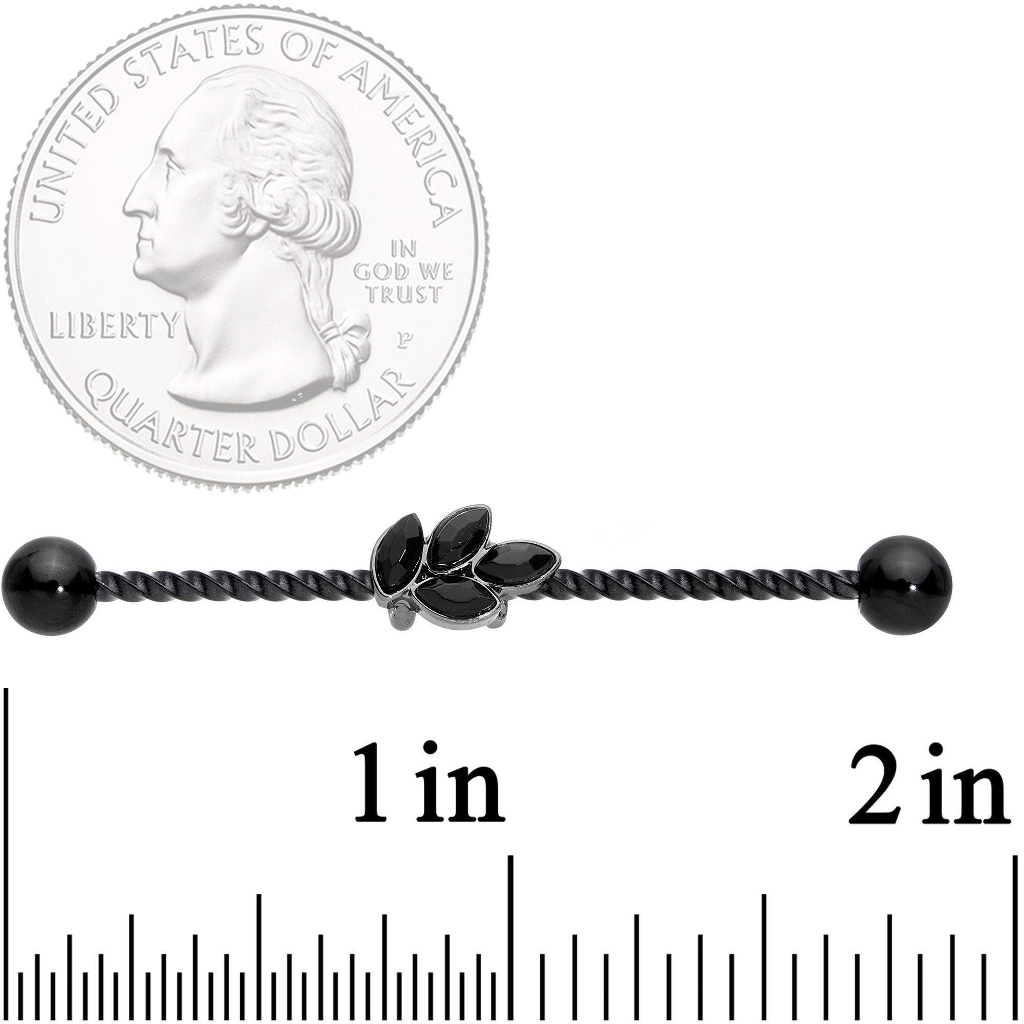 14 Gauge Black Gem Black Anodized Leaf Industrial Barbell 38mm