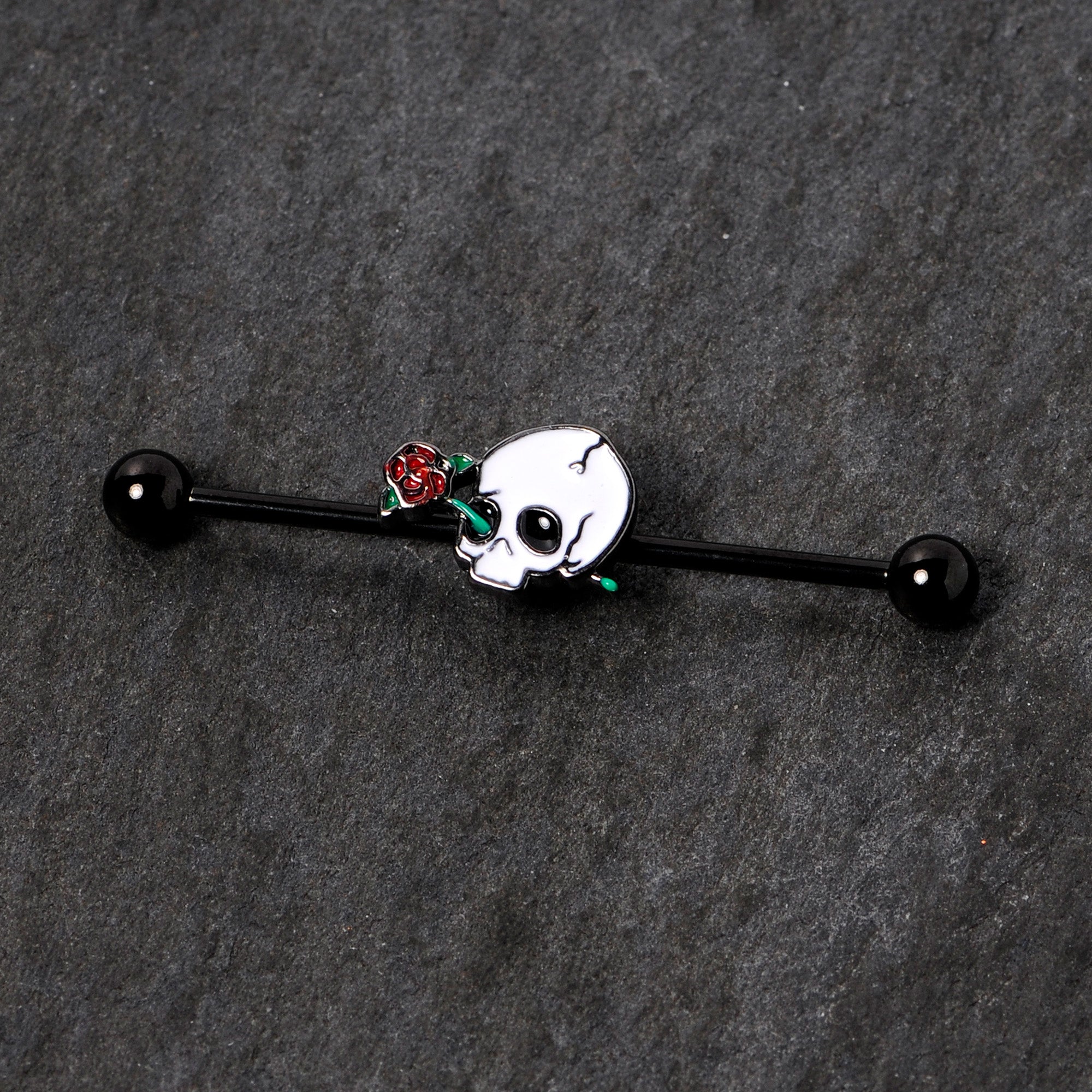14 Gauge Black PVD Rose Skull Halloween Industrial Barbell 38mm