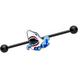Take a bite out of summer with this 14 gauge helix barbell! It's made with a 1 1/2" black PVD over 316L surgical grade stainless steel straight barbell with 5mm ball ends. It features a shark charm coming out of the water! And just like sharks have to keep moving, this one can slide up and down up and down the length of the barbell to give you the look you're hunting for! Even if you're nowhere near the water, get a shark bite this summer with this stunning, scary, shark-themed barbell earring!
