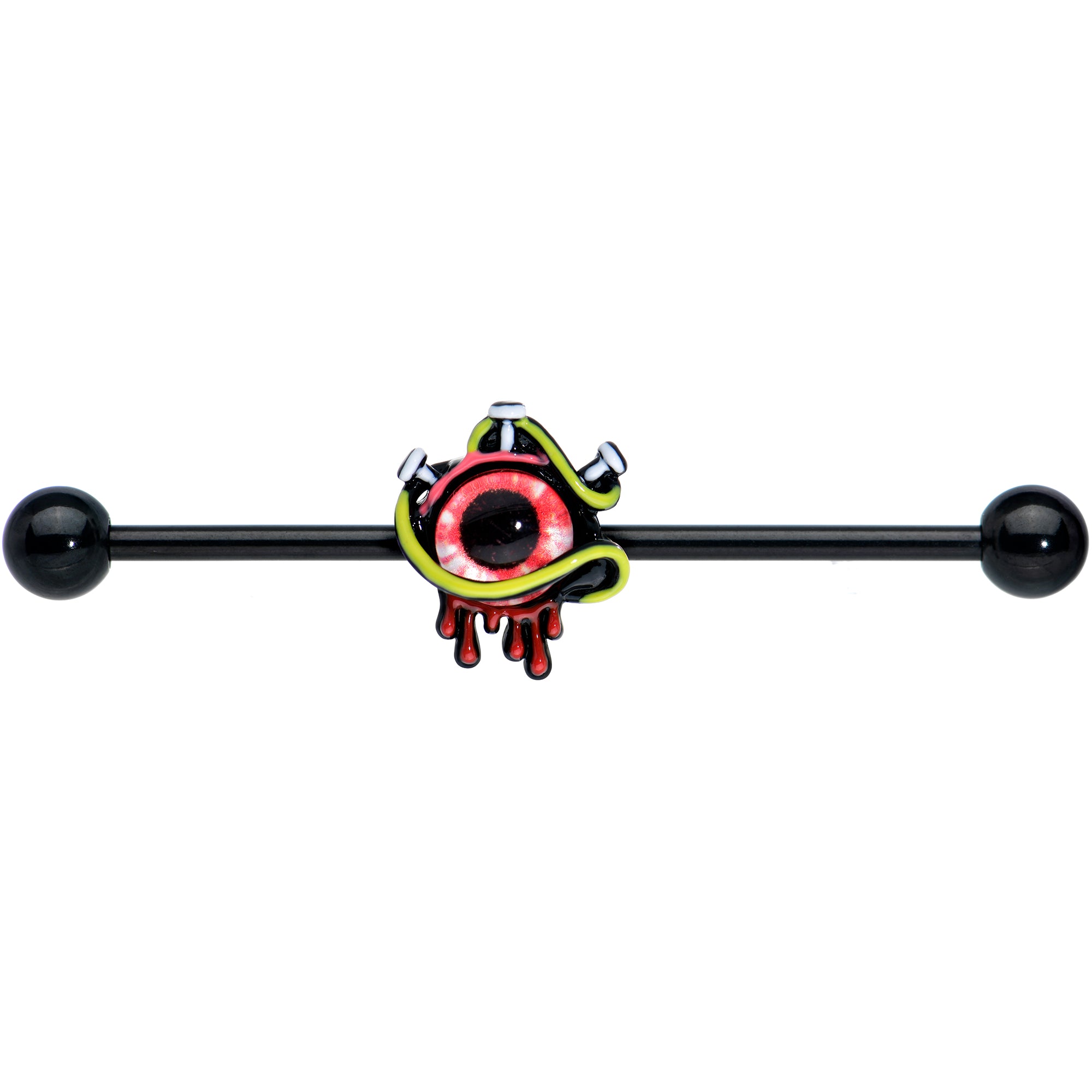 14G Black Spiky Eyeball Halloween Industrial Barbell 38mm