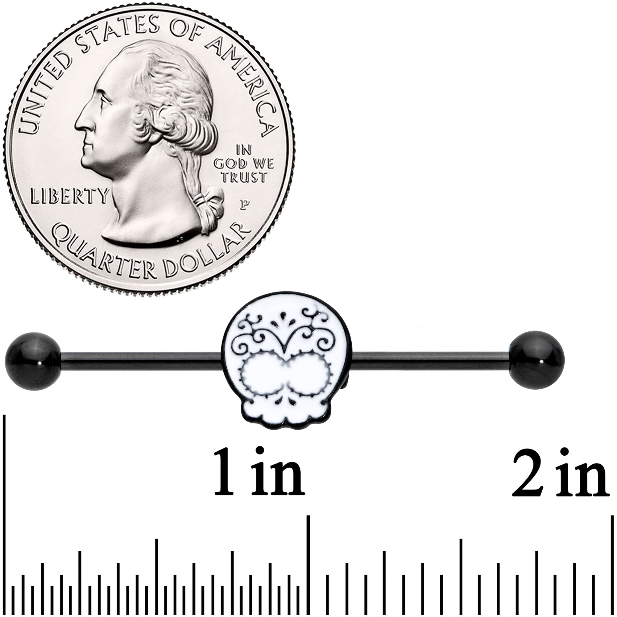 14G Black White Calavera Sugar Skull Industrial Barbell 38mm